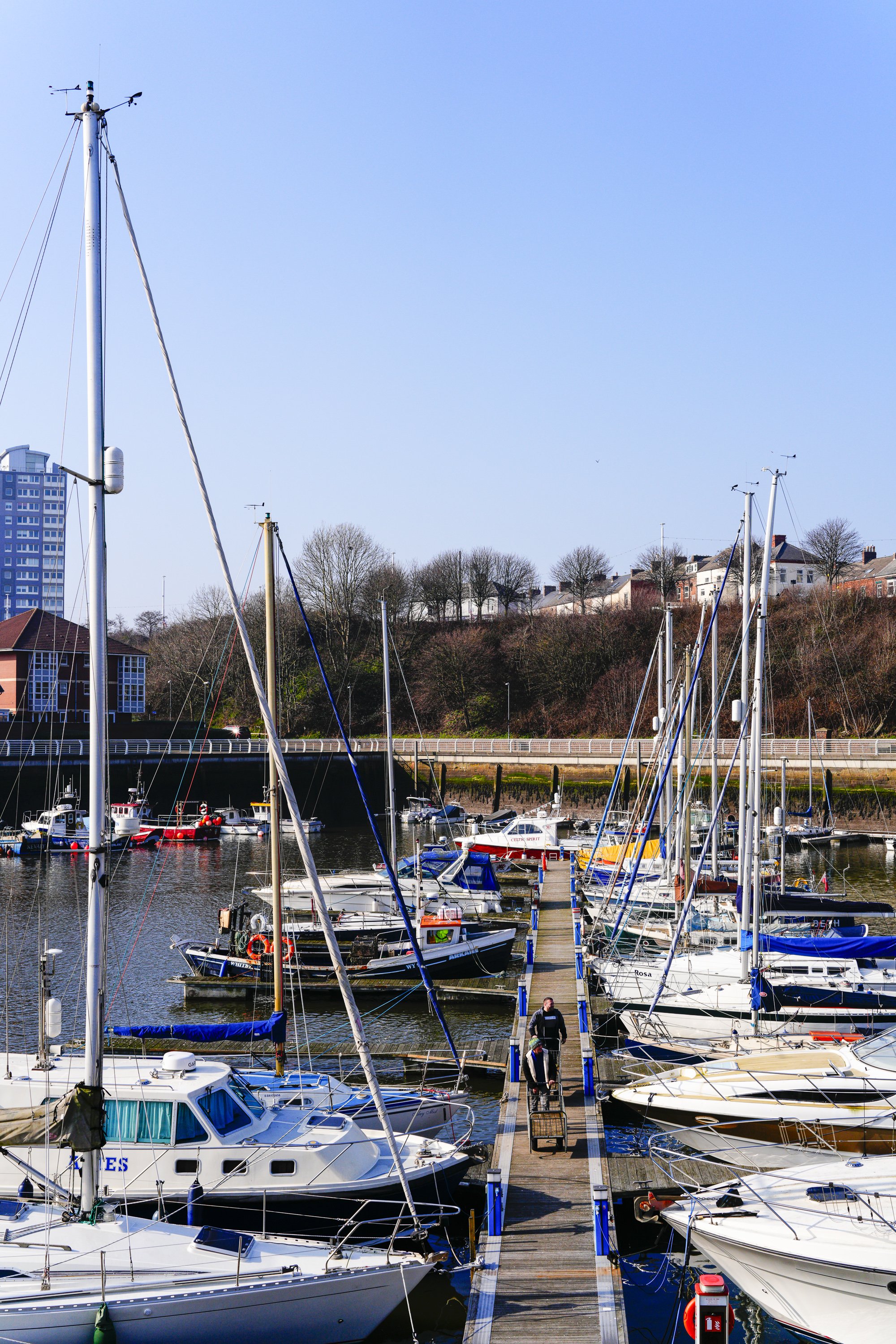 I ventured along the riverside and headed towards Roker Marina. I’d never fully explored the marina before, so it was interesting to see what I’d been missing. There was still a little mist lurking but the sun was starting to emerge. Oh the warm(ish) sun… such a pleasure after a largely dull winter. This was certainly going to help me stay out for longer. The marina isn’t huge but it contained enough novelty to keep me there for half an hour or so. Although I have almost no knowledge of sailing, I do enjoy seeing vessels of various shapes and sizes moored up. I wonder who owns them and what they are used for. I’m always fascinated by the names given to the various crafts too. I am still waiting to see one called ‘Keith’. I am sure it will happen.